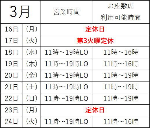(毎週月曜日・第三火曜日はお休み)